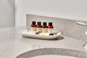 The Travers offers the luxury of two bedrooms, including a king size master bedroom with an on-suite bathroom, and another bedroom furnished with two queen beds. Additionally, the living room features a queen sized pull out sofa bed, providing ample sleeping space for extra guests. Both bedrooms are accompanied by fully tiled bathrooms, with the master suite boasting a private deck and a stunning marble and granite walk-in shower with a rain head. The other bathroom features a beautifully tiled bathtub, perfect for relaxing after a busy day in the city.