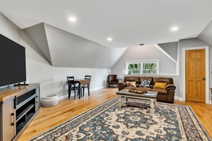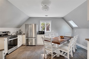 Enjoy your morning coffee or evening cocktail on the large front porch with our other guests, or on the third story private deck, or play board games with your family. Catch up with the office in the personal workspace nook. The indoor and outdoor dining areas can accommodate up to 8 guests at each, making it the perfect spot for a family gathering or a group of friends.